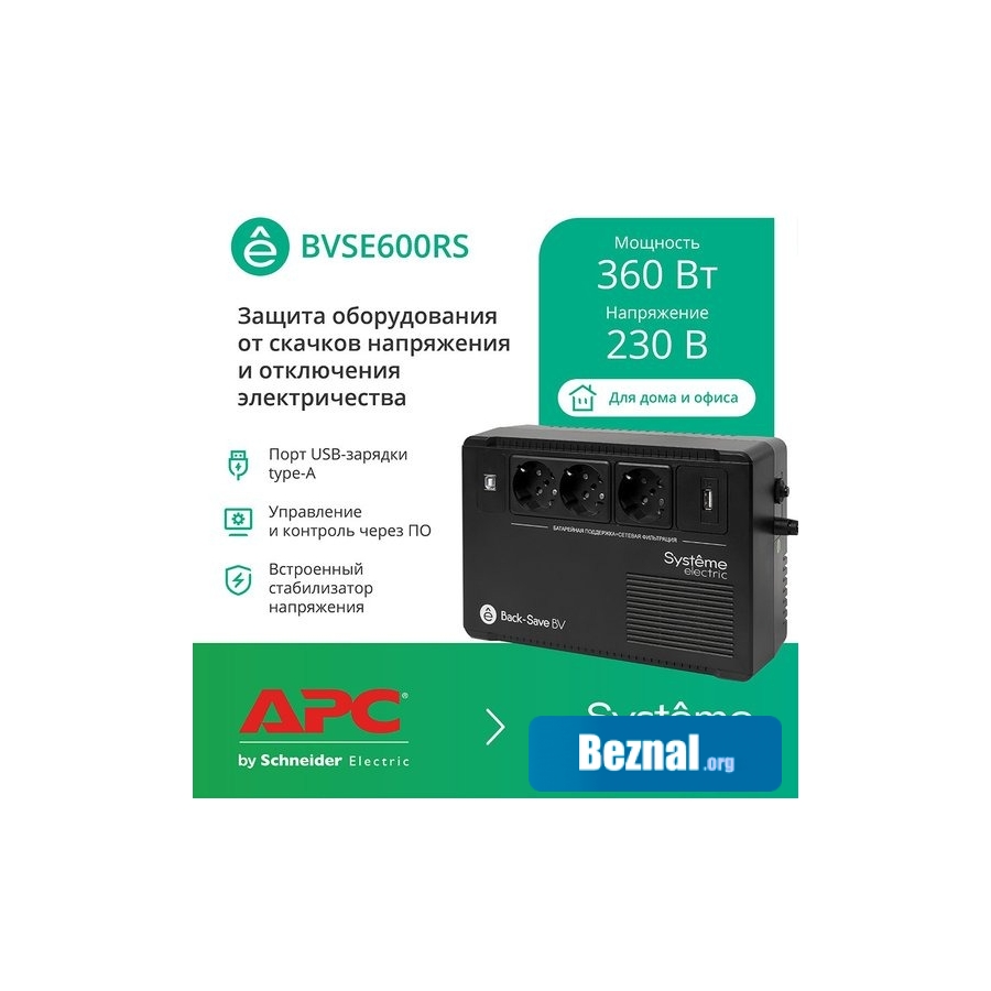 Купить Источники бесперебойного питания Systeme Electric BVSE600RS по безналу в Минске